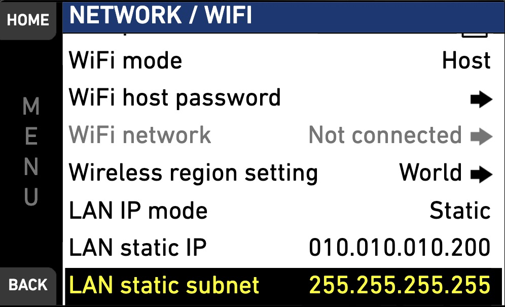 LAN static IPandLAN static subnet(see IP Addressing for more information):
